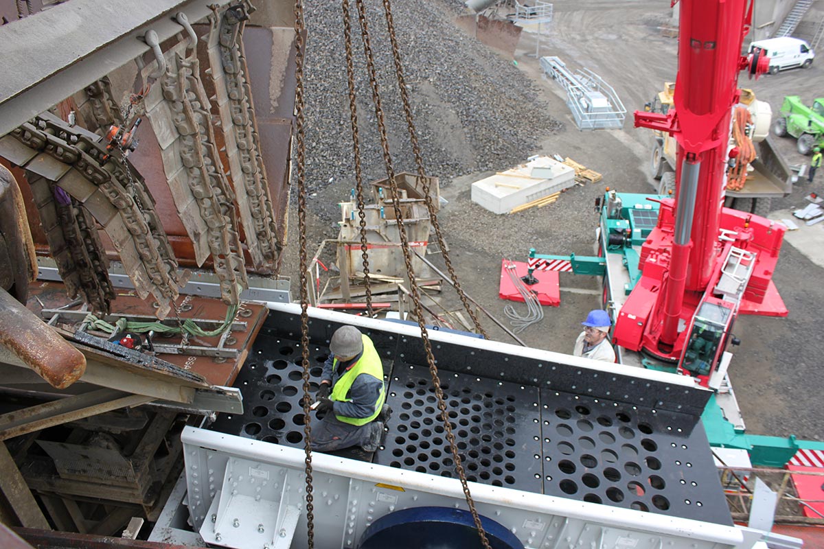 Das Herzstück der Brecheranlage wurde durch einen neuen Backenbrecher erneuert und es wurden eine neue Siebmaschine sowie viele neue Förderbänder eingebaut.